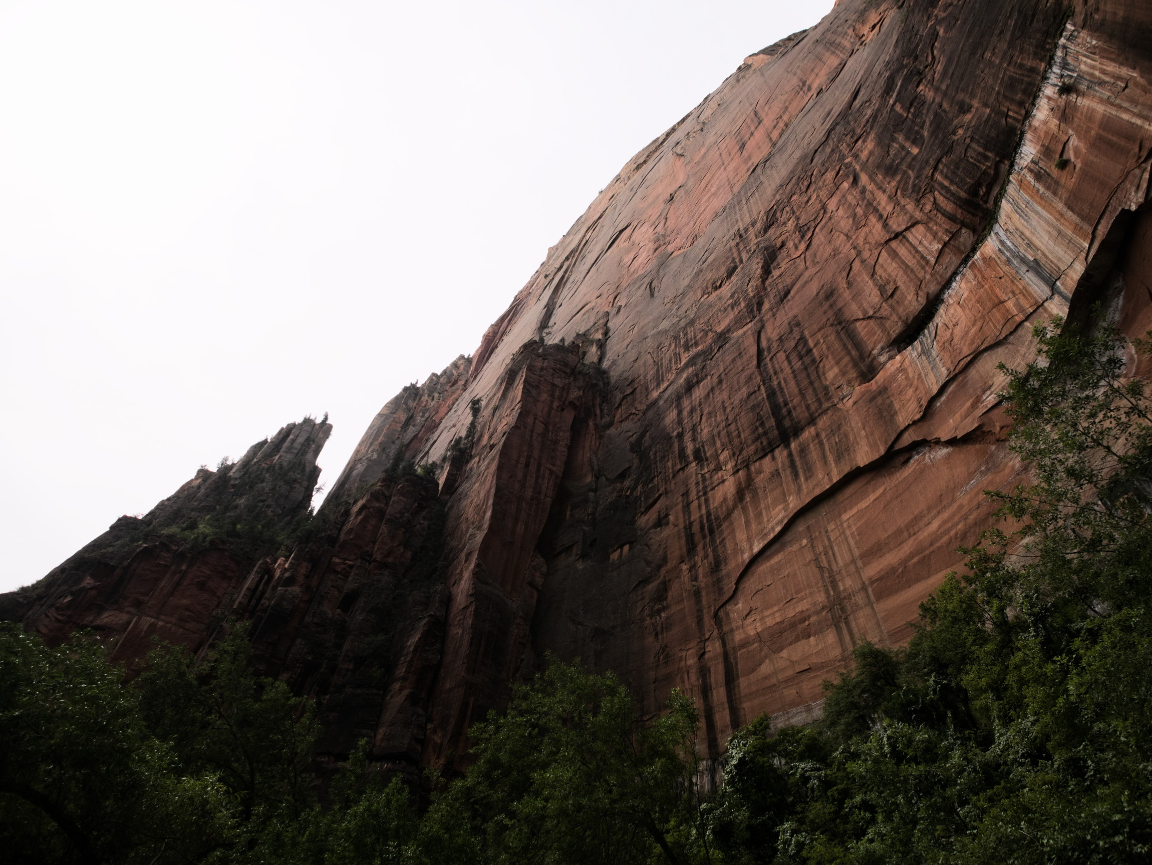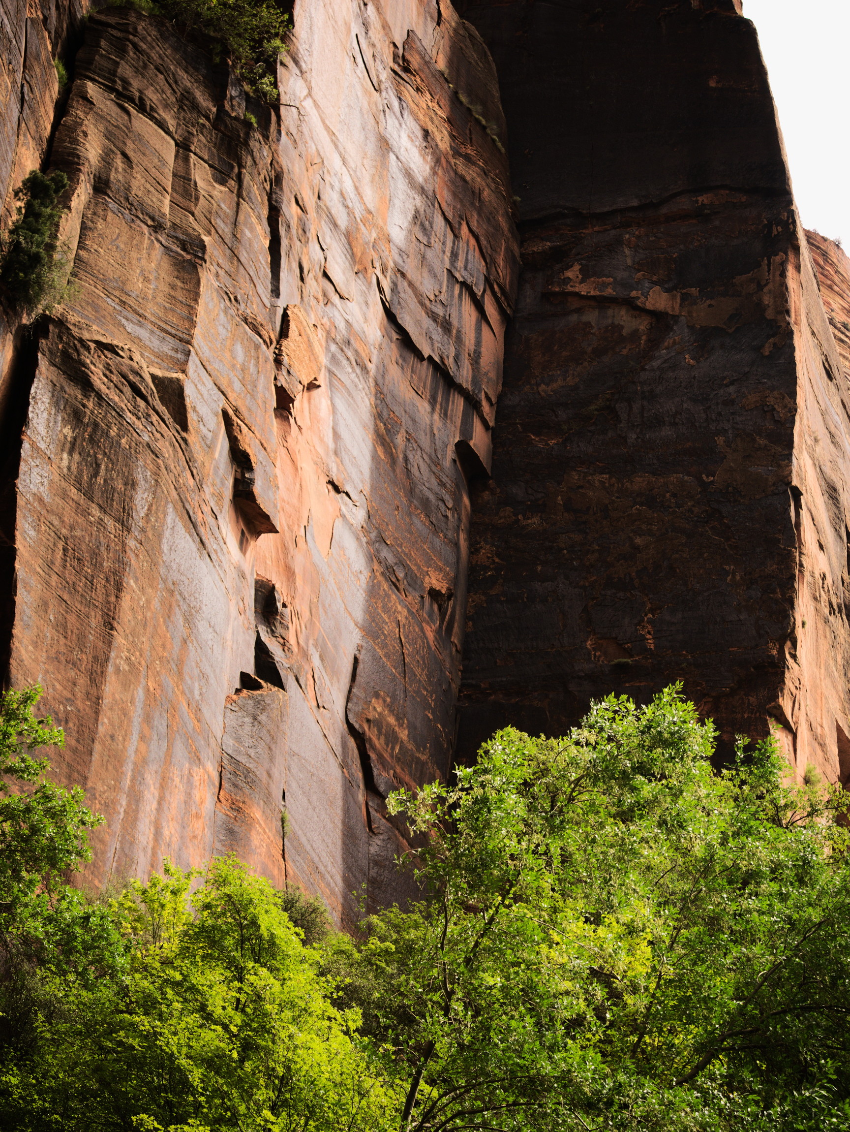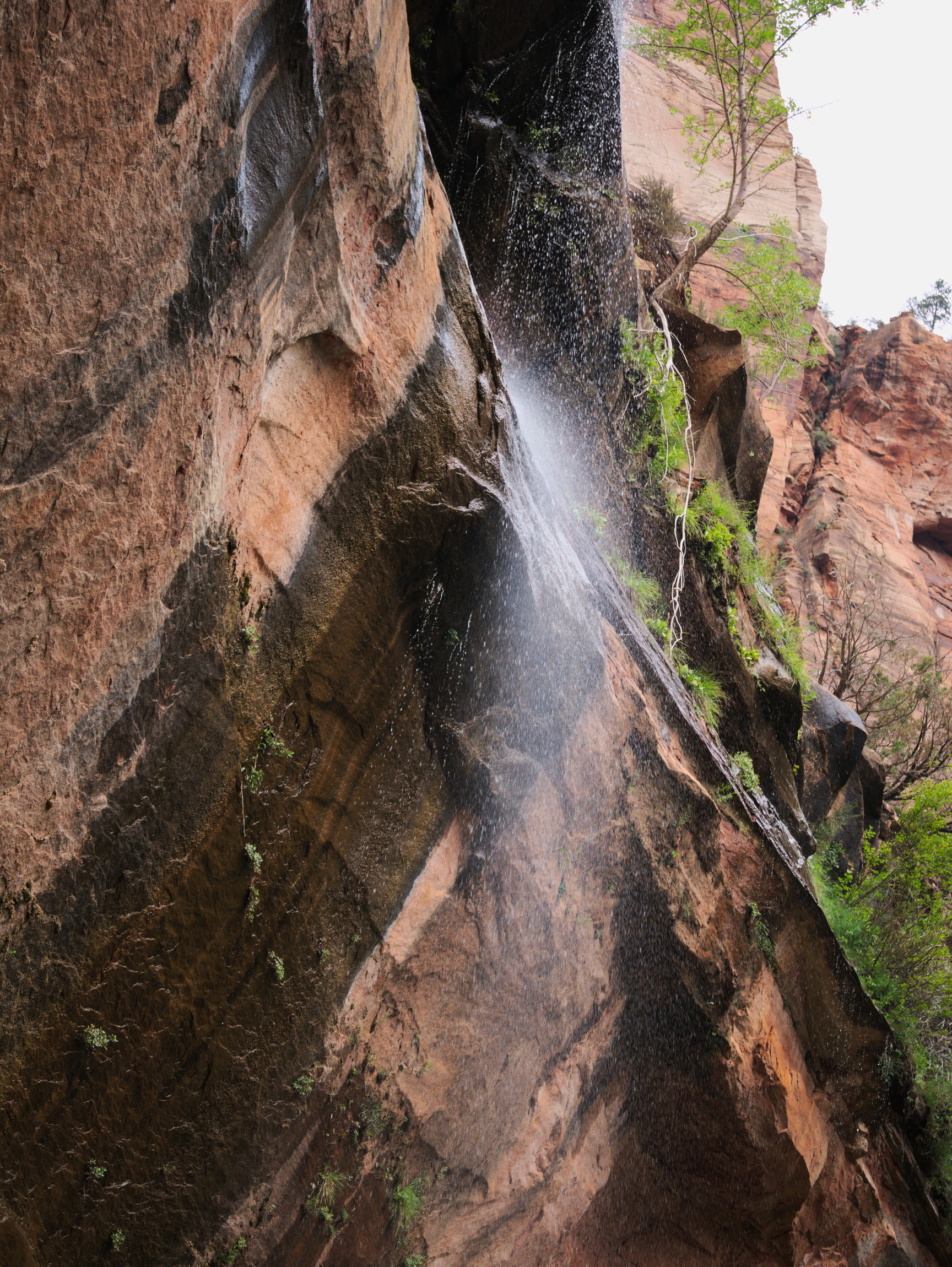 七月并不是观赏瀑布最好的时间,夏季水位下降,很多瀑布都干涸了,幸运的是我们沿途的几个瀑布还都嘀嘀嗒嗒的流着些许的水,至少让我们很容易定位。否则,估计走过了路过了也就错过了。比起之前的一天,这一天的记忆并不深刻,多少有点遗憾,时隔两年本来就不深刻的记忆已经近乎为零,翻翻照片找回些许的片段。走完了Emerald pool 之后,去了很有名的另外一个景点 The Narrows。顾名思义,这里是整个国家公园最狭窄的地段。两边的山壁高达1000多英尺,而夹在这当中的布道事实上是一条河流,一条只有20到30英尺宽度的河流。布道就是这条狭窄河流的河床。正是因为如此,这里的最大风险就是因为上流种种原因突然涌入的水量会导致围困甚至是危险。我因为体力的耗尽,只走了最初了1英里距离,用肉眼略微参观一下the narrows 的入口就打道回府了。因为接下来的布道都是在水中,所以每年的夏天才是最适合在这里徒步的时候,当然如果你不怕湿的话。