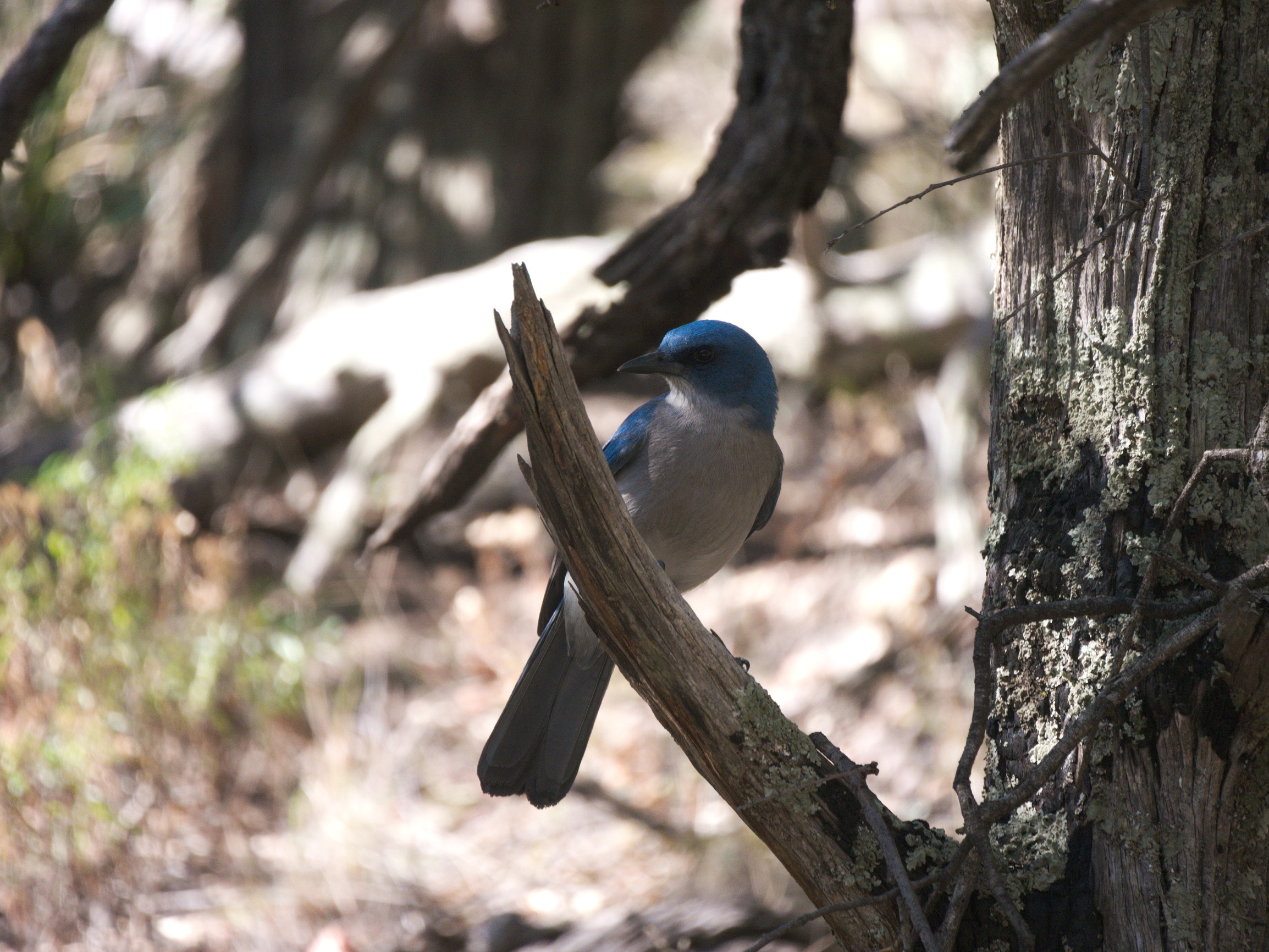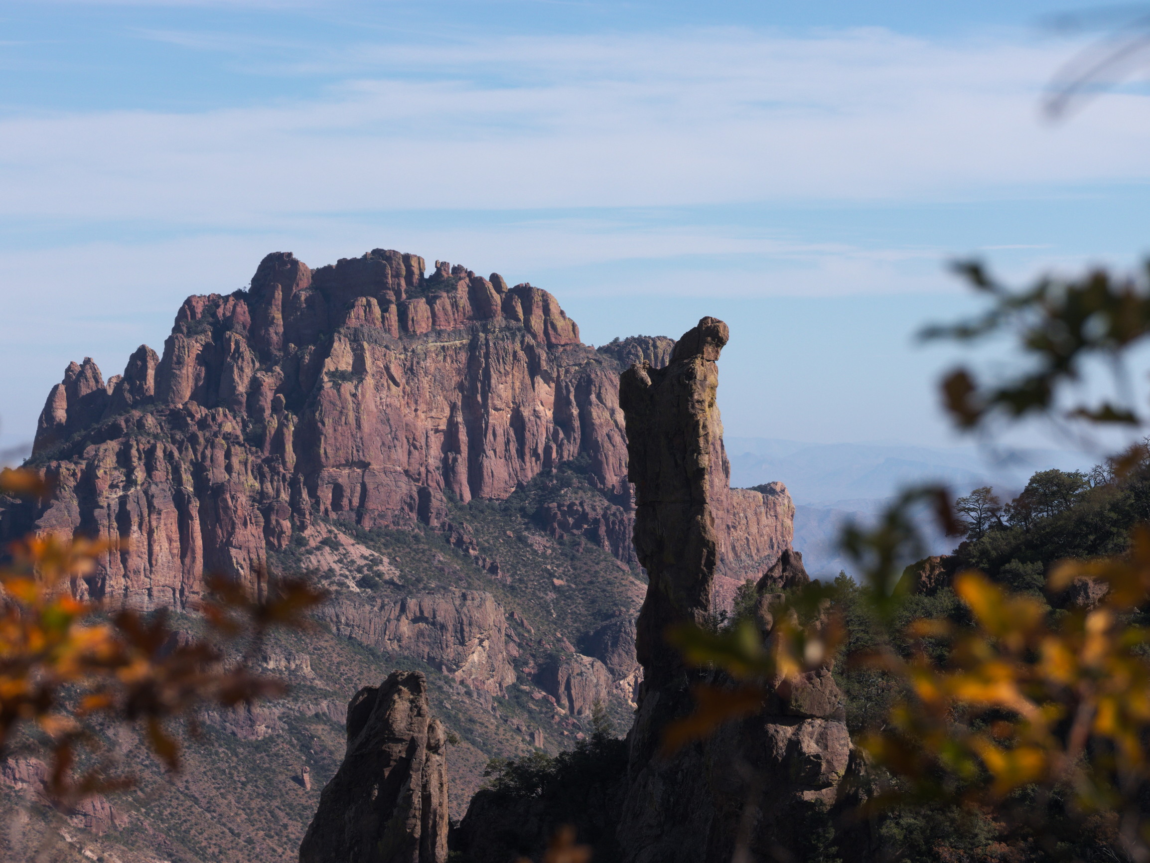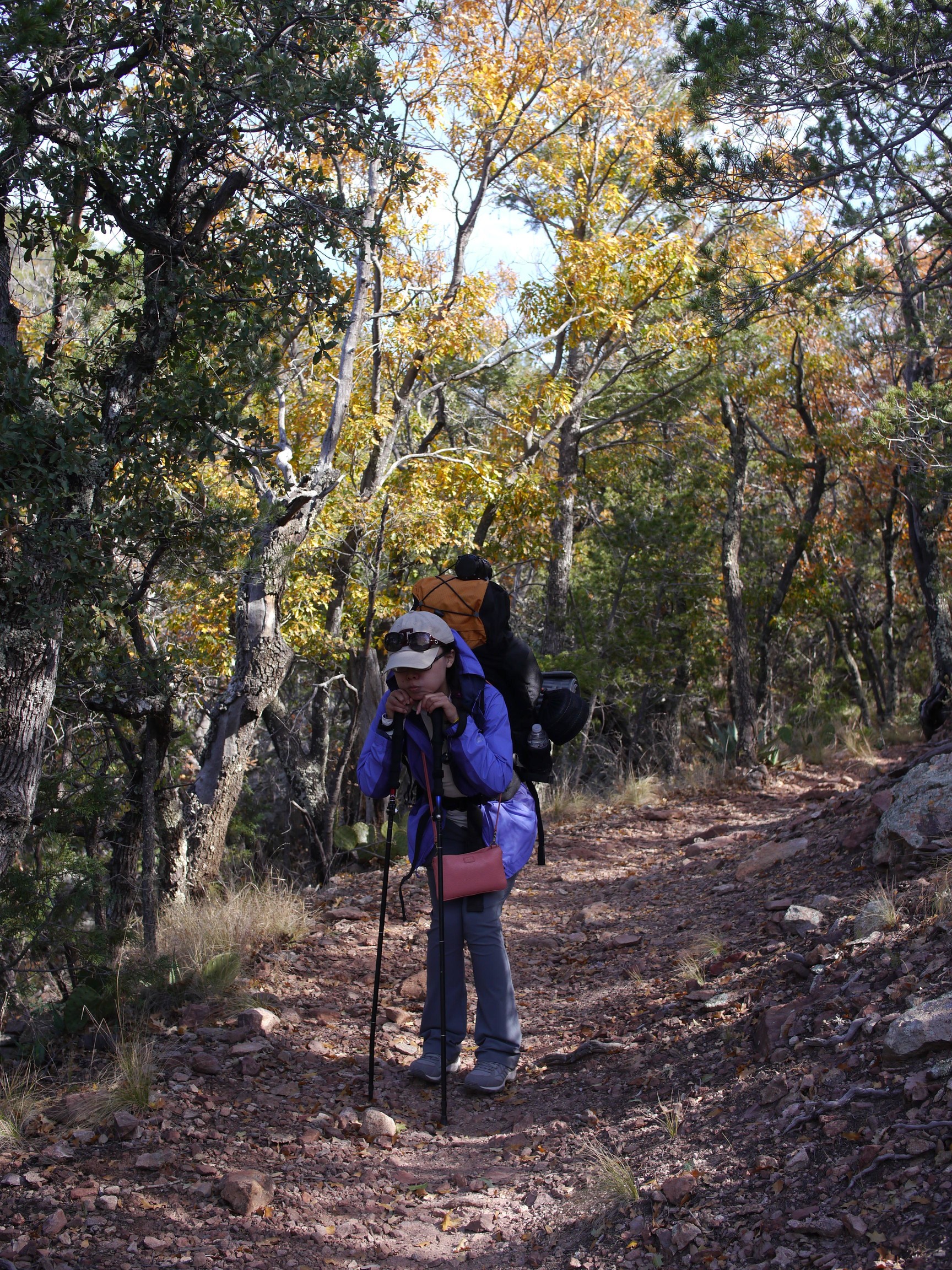 第二天比第一天更加的轻车熟路,或许因为压力裤的关系,第二天的我们并没有感觉腿酸或者痛。一路上从2200+米的高度往下走,走到第二个露营地。下山背着明显轻了许多的登山包也不是件非常容易的事情,索性我们习惯了登山杖的使用,也成功的学习了猿类四足走路下山的精华,倒是给膝盖大大的减少了压力。 路上远远的看到了如同倒扣在地上的靴子一般的巨大石头还有蓝色的墨西哥松鸦。
